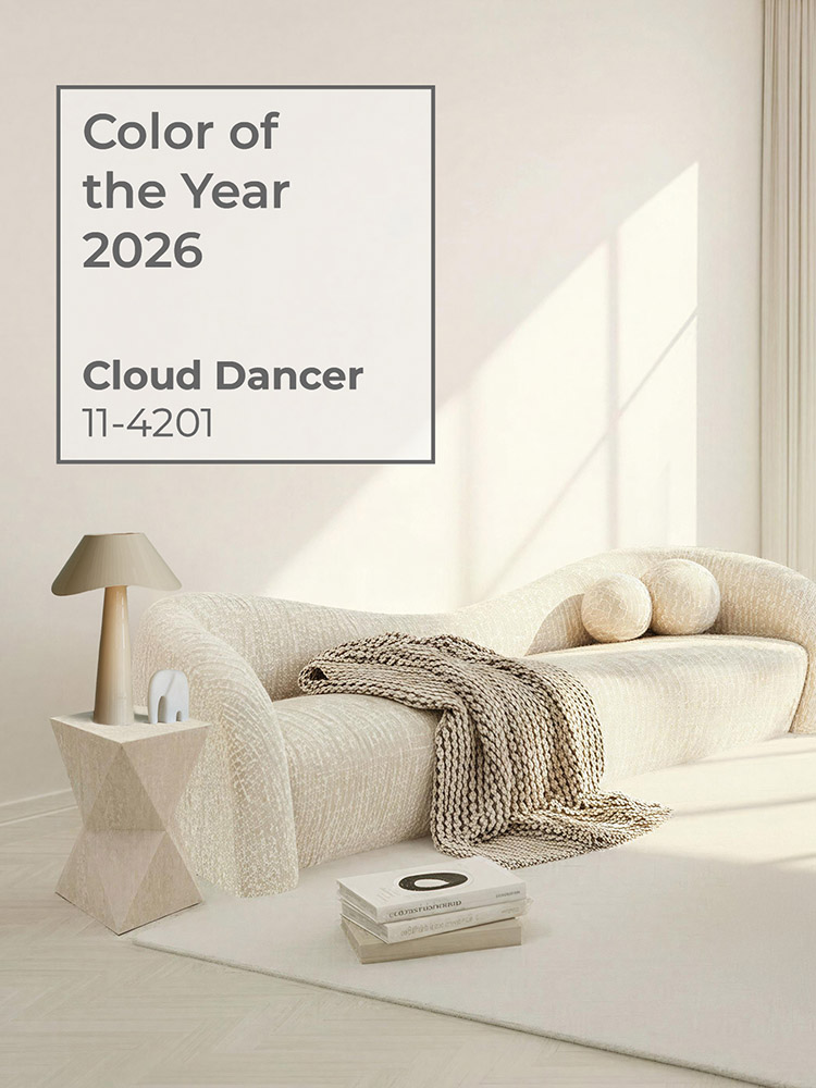 Pantone Cloud Dancer 11-4201: Das ist die Trendfarbe des Jahres 2026! Die Farbe ist ein reines, weiches Weiß, das Ruhe und Leichtigkeit ausstrahlt. Sie wirkt zeitlos modern und bringt eine stille Eleganz in jedes Design. So schafft die Farbe Raum zum Atmen, lenkt den Blick auf das Wesentliche und vermittelt ein Gefühl von Klarheit, Reinheit und harmonischer Balance.