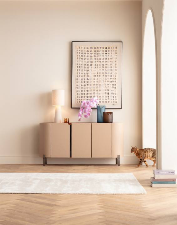 Mit klaren Linien, weichen Kanten und durchdachtem Stauraum fügt sich das Sideboard der Serie Tango nahtlos in moderne Wohnkonzepte ein. Ein vielseitiges Möbelstück mit harmonischer Ästhetik.